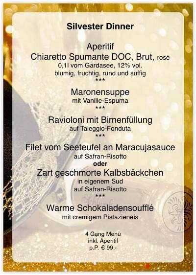 31.12. 18:00 - 23:00 Uhr (4 Gang Menü)